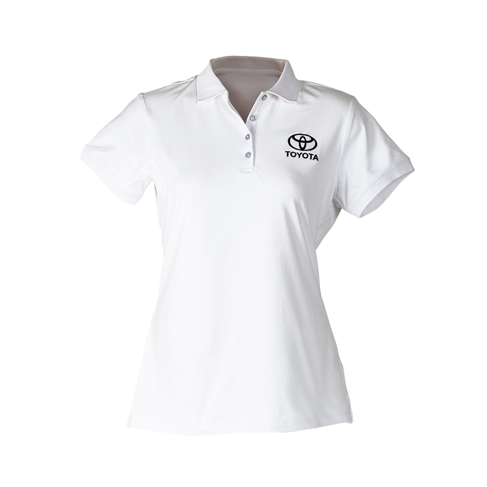 65% polyester 35% cotton pique knit polo with knitted collar.