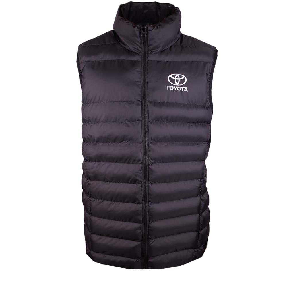 Stay warm and dry with the black Toyota Puffer Vest, featuring a 100% nylon waterproof shell and a 100% polyester quilted lining for added insulation. Designed for comfort and durability, this vest is perfect for layering in unpredictable weather.