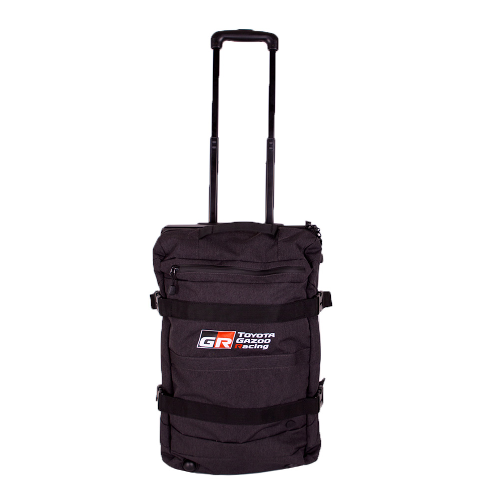 Gazoo Racing Wheeled Bag in charcoal grey marl with a contrast blue lining.