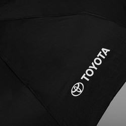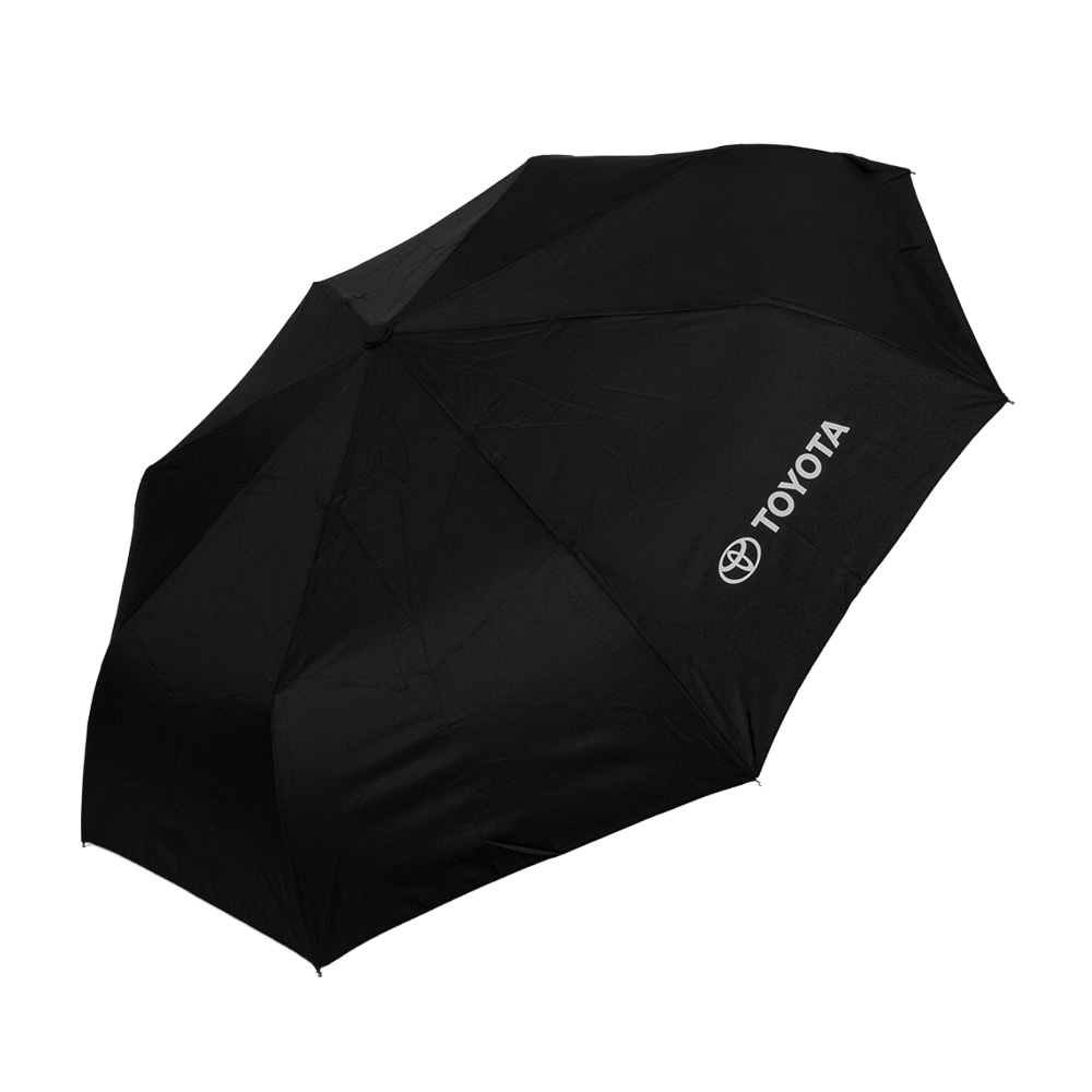 Reliable protection from rain or sun, the Toyota Compact Umbrella combines practicality with a sleek design. Featuring automatic open and close, a durable pongee canopy, and a strong fibreglass and metal frame, it’s built to last. The chrome-finished steel shaft and soft-touch handle provide comfort, while the Toyota logo screen printed in white on one panel adds a premium branded touch. Ideal for corporate gifts, promotional merchandise, commuting, travel, or everyday use.