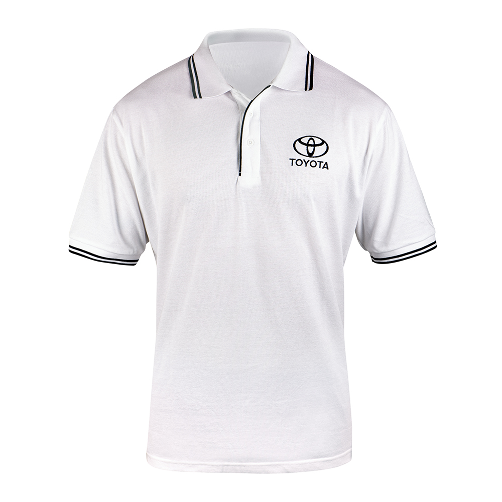 Men's Toyota Polo shirt in White with black detailing.