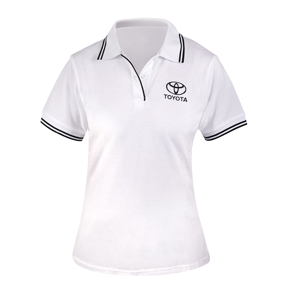 Women's Toyota Polo shirt in White with black detailing.